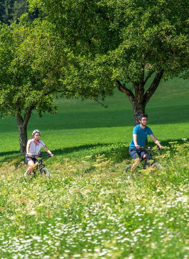 Ein ganz besonderer Wander- und Einkehrtipp direkt vom Hotel aus ist unsere Hausalm, die „Schmiedlalm“. Sie ist ganz einfach in ca. 50 Minuten über einen leicht ansteigenden Forstweg zu erreichen – eine gemütliche Wanderung für die ganze Familie. Angekommen auf der kleinen Alm inmitten der wunderschönen Bergwiesen mit blühenden Almblumen und einem herrlichen Panoramablick können Sie sich von Klaus, dem Bruder von unserem Hotelchef Christian, so richtig verwöhnen lassen. Ein kühles Getränk, eine zünftige Jause, typische Südtiroler Knödel oder ein süßer Kaiserschmarrn stehen auf der Speisekarte der Schmiedlalm.
