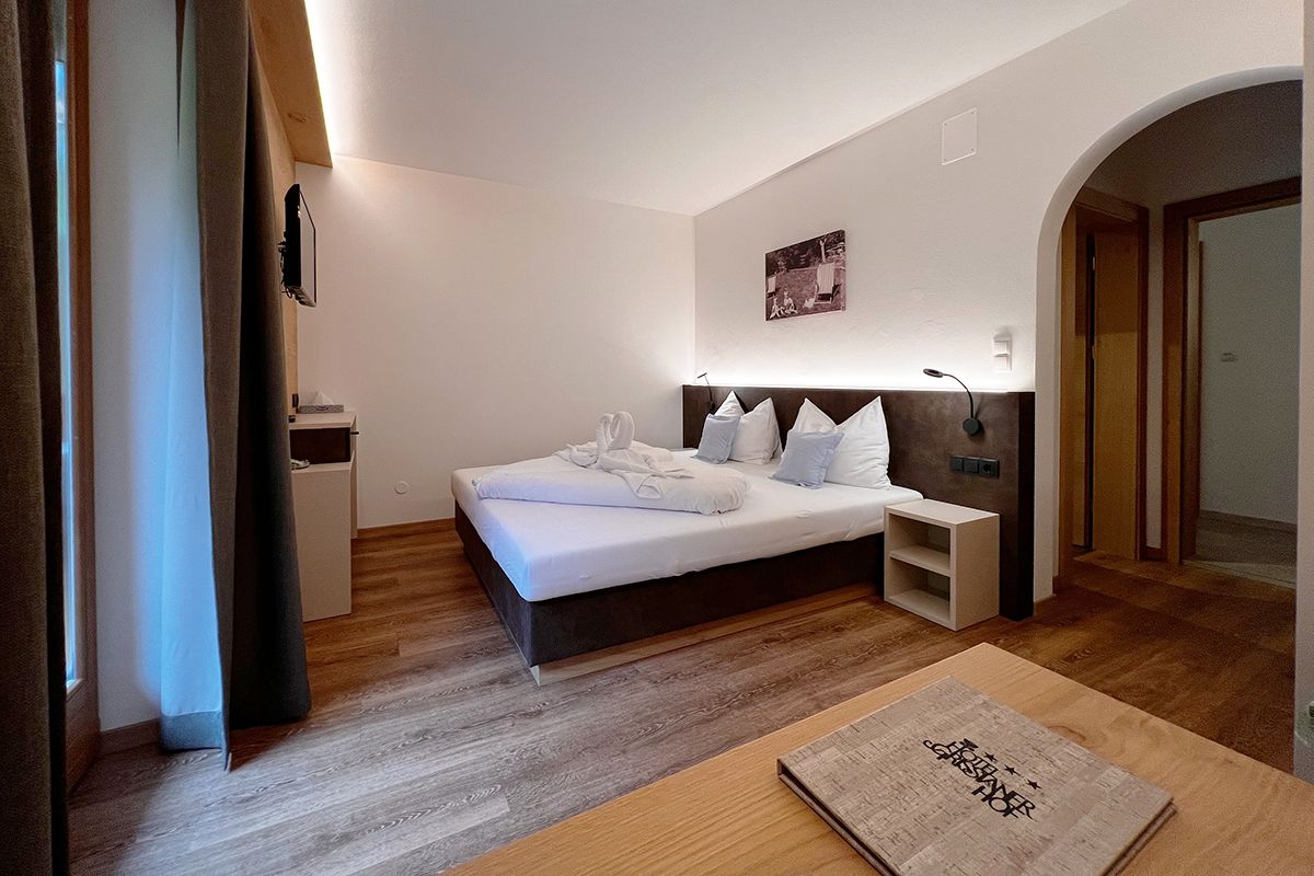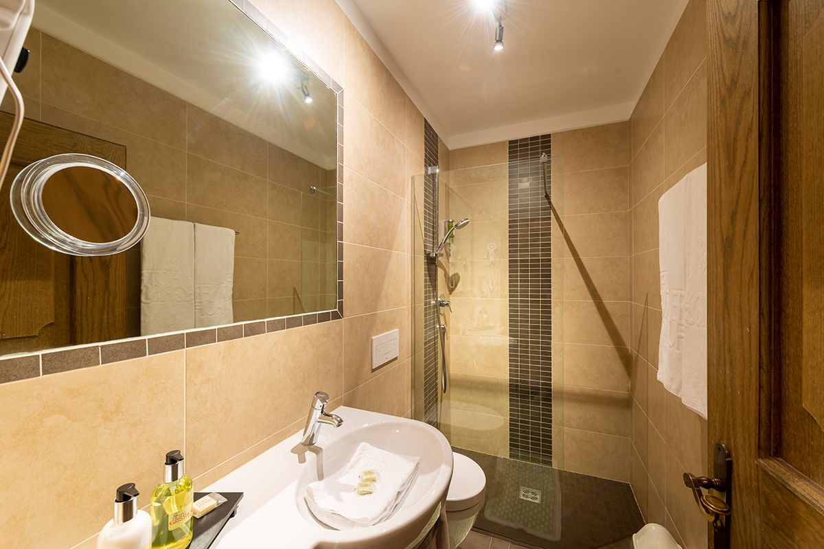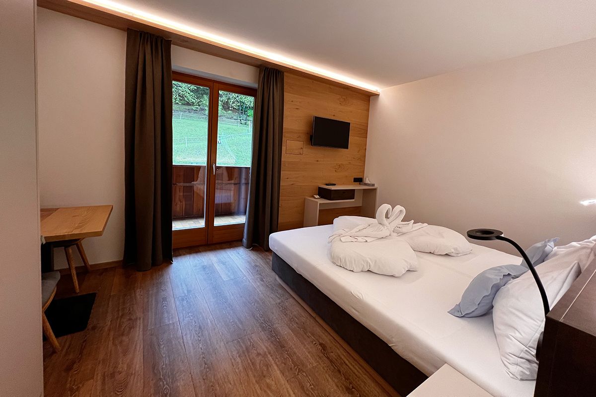 Camera con pavimento di design effetto legno, comodo letto a molle, mobili da incasso moderni e di alta qualità, cassaforte a muro, tavolo in legno di castagno con due sedie, TV a schermo piatto con TV satellitare, balcone con vista sul castagneto, tavolo e sedie a sdraio per godersi il sole del pomeriggio, bagno con WC, doccia e asciugacapelli, accappatoi e ciabatte da bagno. WiFi gratuito.